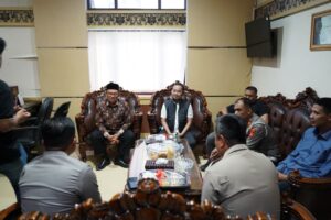 Ketua DPRD Kota Tasikmalaya H. Aslim, S.H. M.Si bersama Wakil Ketua DPRD Kota Tasikmalaya H. Hilman Wiranata, S.Pd, M.Si. menerima silaturahmi dari Kapolres Tasikmalaya Kota AKBP Andi Purwanto, S.IK, M.H. bersama jajaran Polres Tasikmalaya Kota. Kamis,(8/01/2026).
